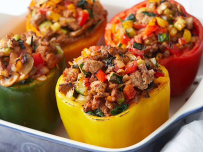 mixture into each pepper topping with more cheese on top. Place each bell pepper in cake pan and bake